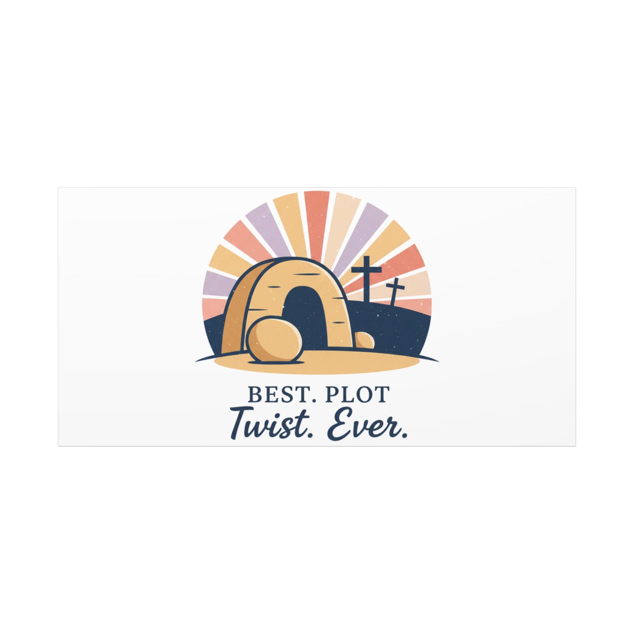 Playful Christian Easter wall art that balances reverent symbolism with gentle humor. The design shows an empty tomb, sunrise rays in a soft pastel palette, and a lighthearted line that ties resurrection imagery to a warm, shareable joke — aligned with faith-based Easter humor and church wardrobe aesthetics. It fits seasonal home décor or church fellowship spaces where families and faith communities gather, offering a respectful yet whimsical nod to Easter morning.