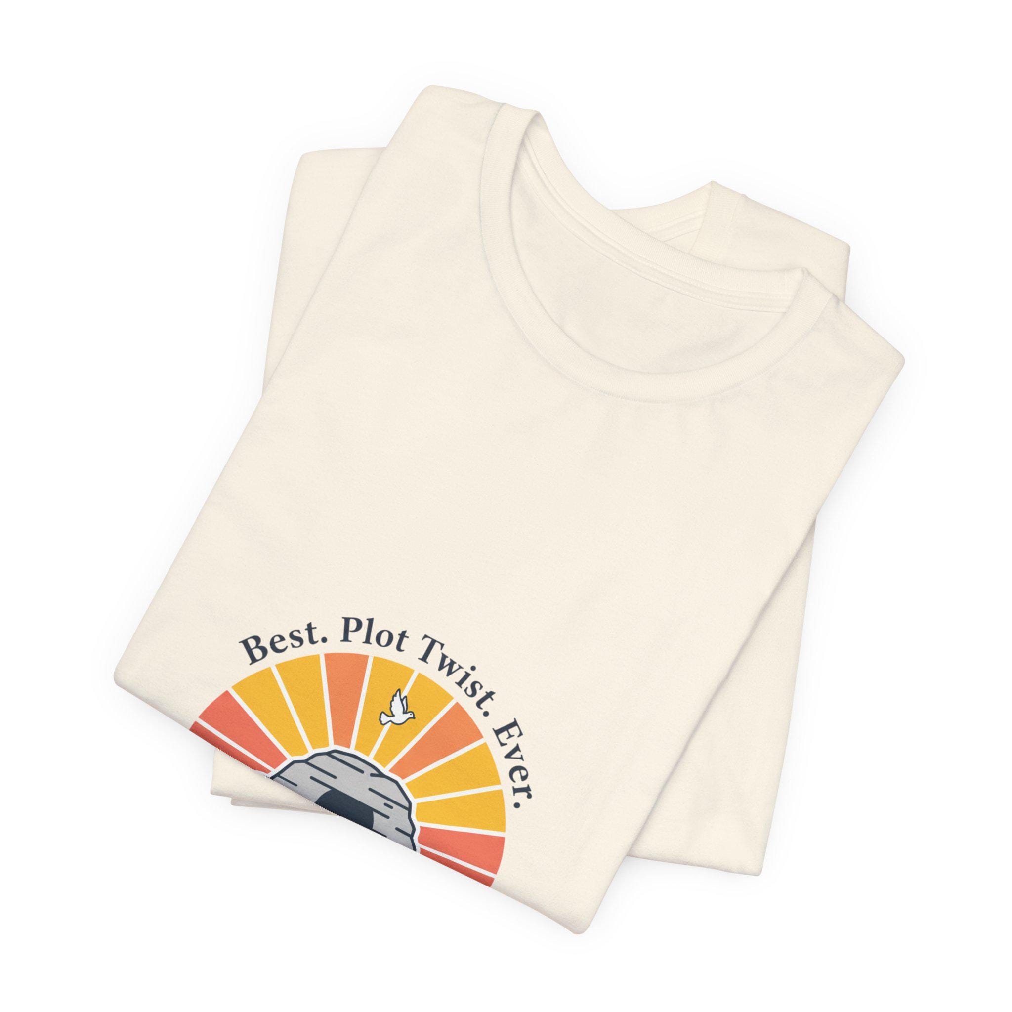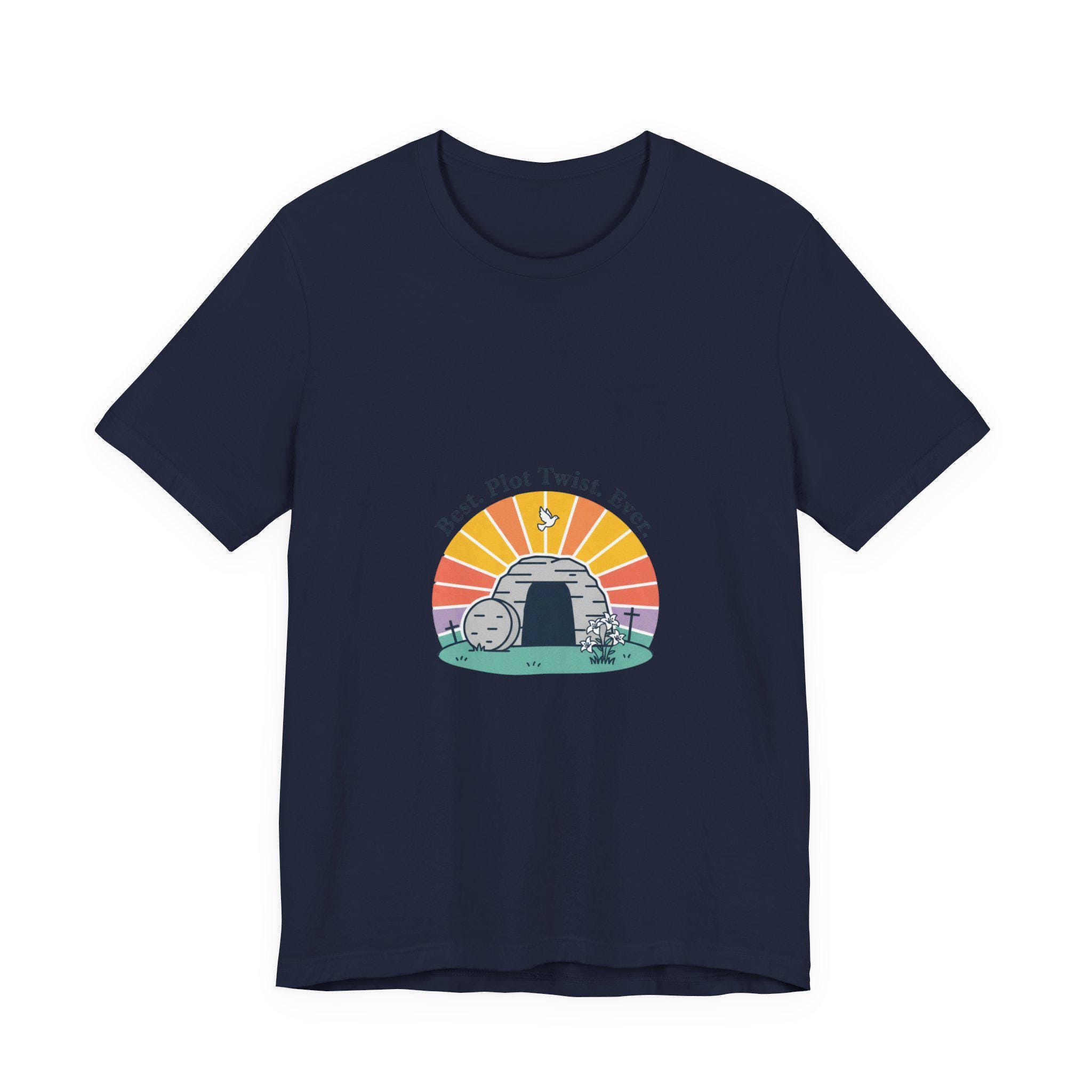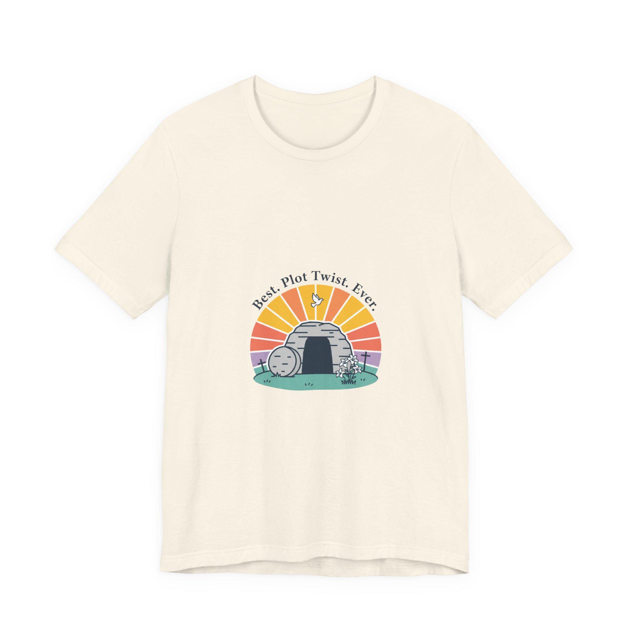 Soft sunrise colors and a lighthearted faith-forward line create a reverent-but-playful Easter tee for churchgoers and families. The illustration centers on an empty tomb at sunrise with gentle, vintage-inspired type and a calm pastel palette — aligning with Playful Christian Easter Humor by mixing uplifting resurrection imagery and a subtle smile. It reads as church Sunday wear that feels warm, approachable, and seasonally gentle, easy to pair with layers for spring services or community gatherings.