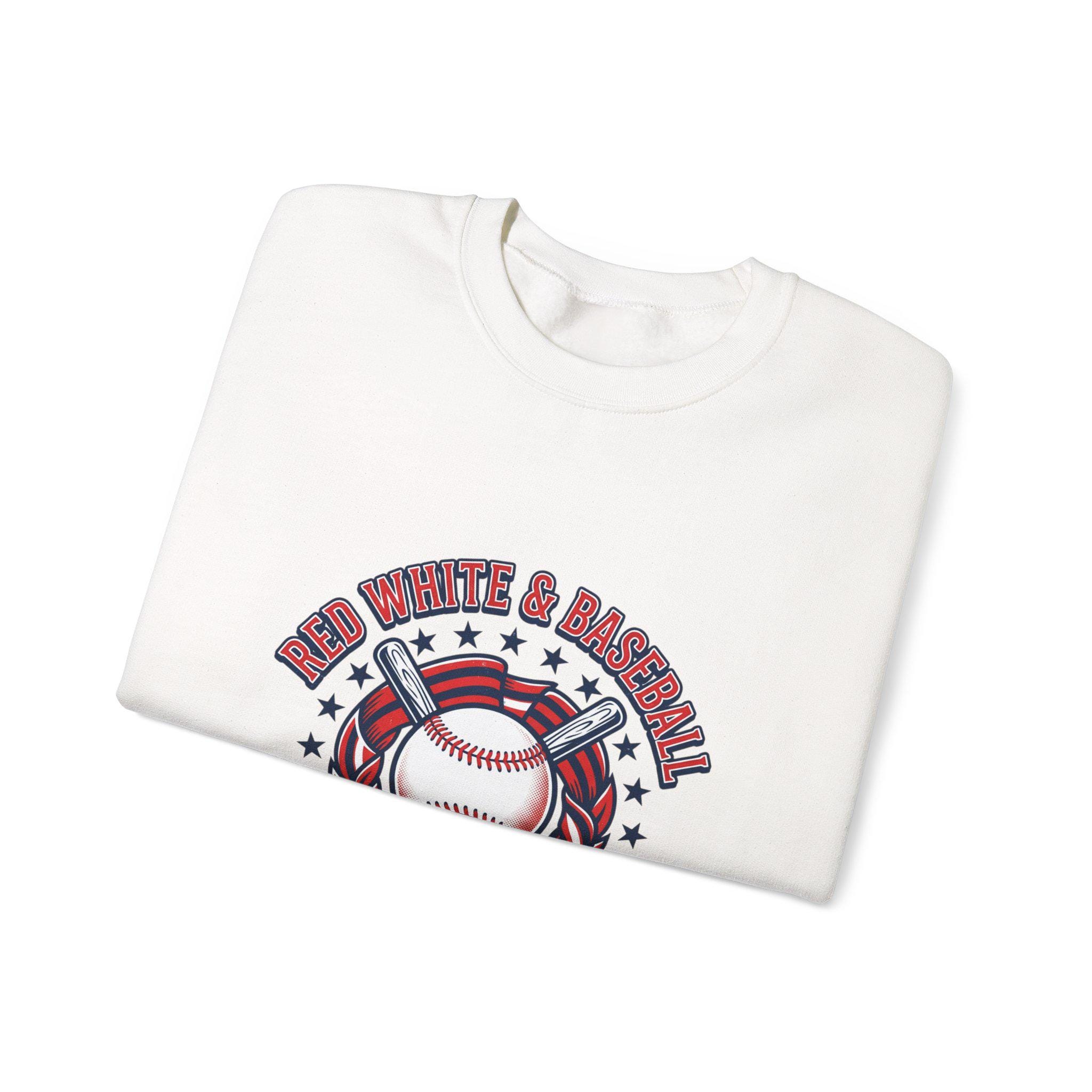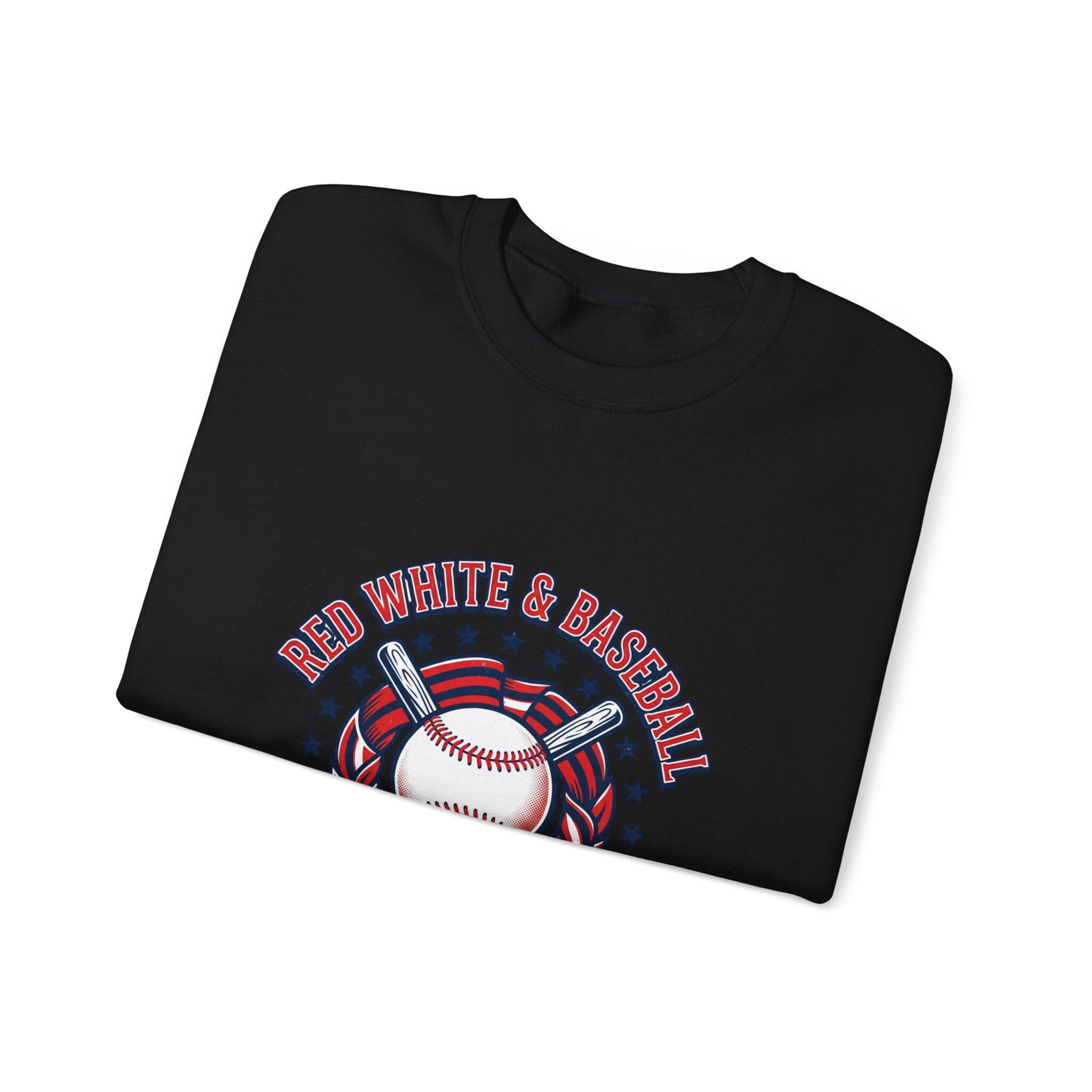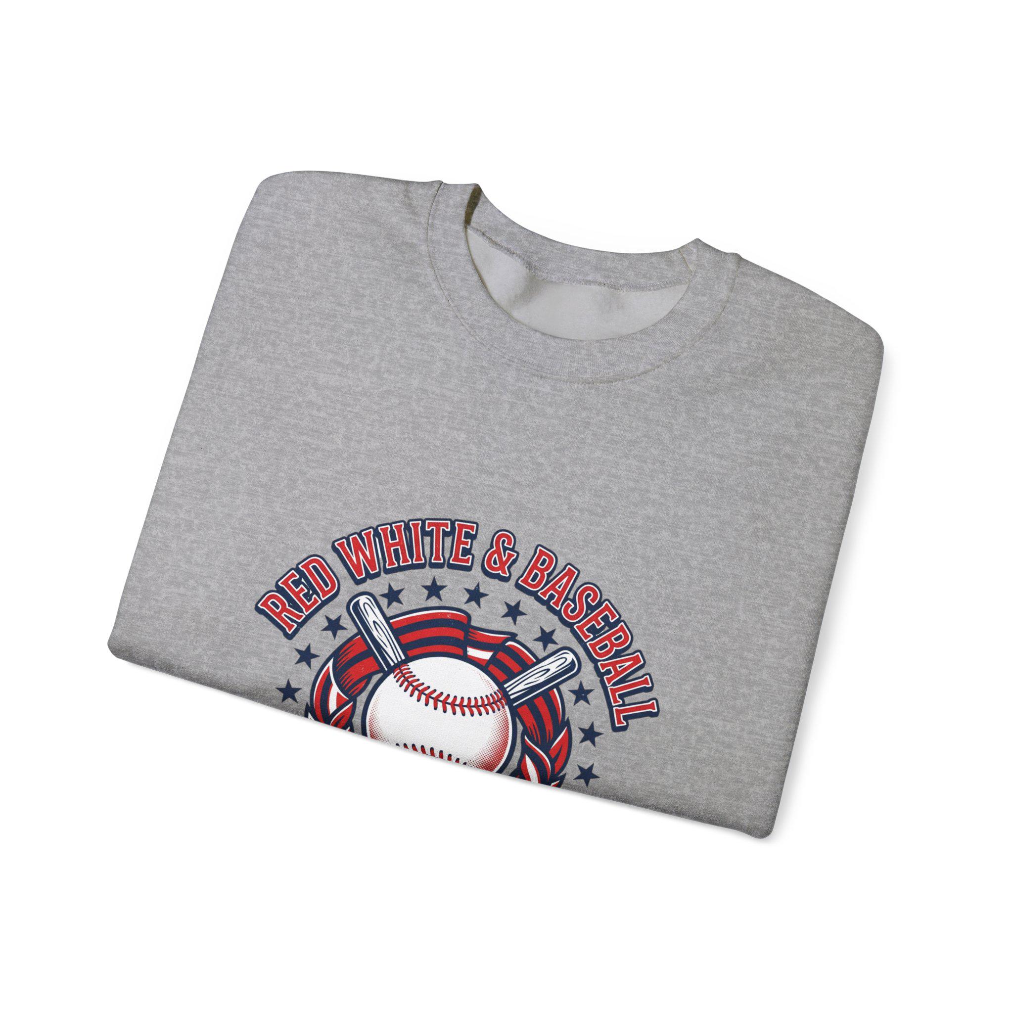 Red White & Baseball Crewneck Sweatshirt | Vintage Patriotic Baseball Graphic