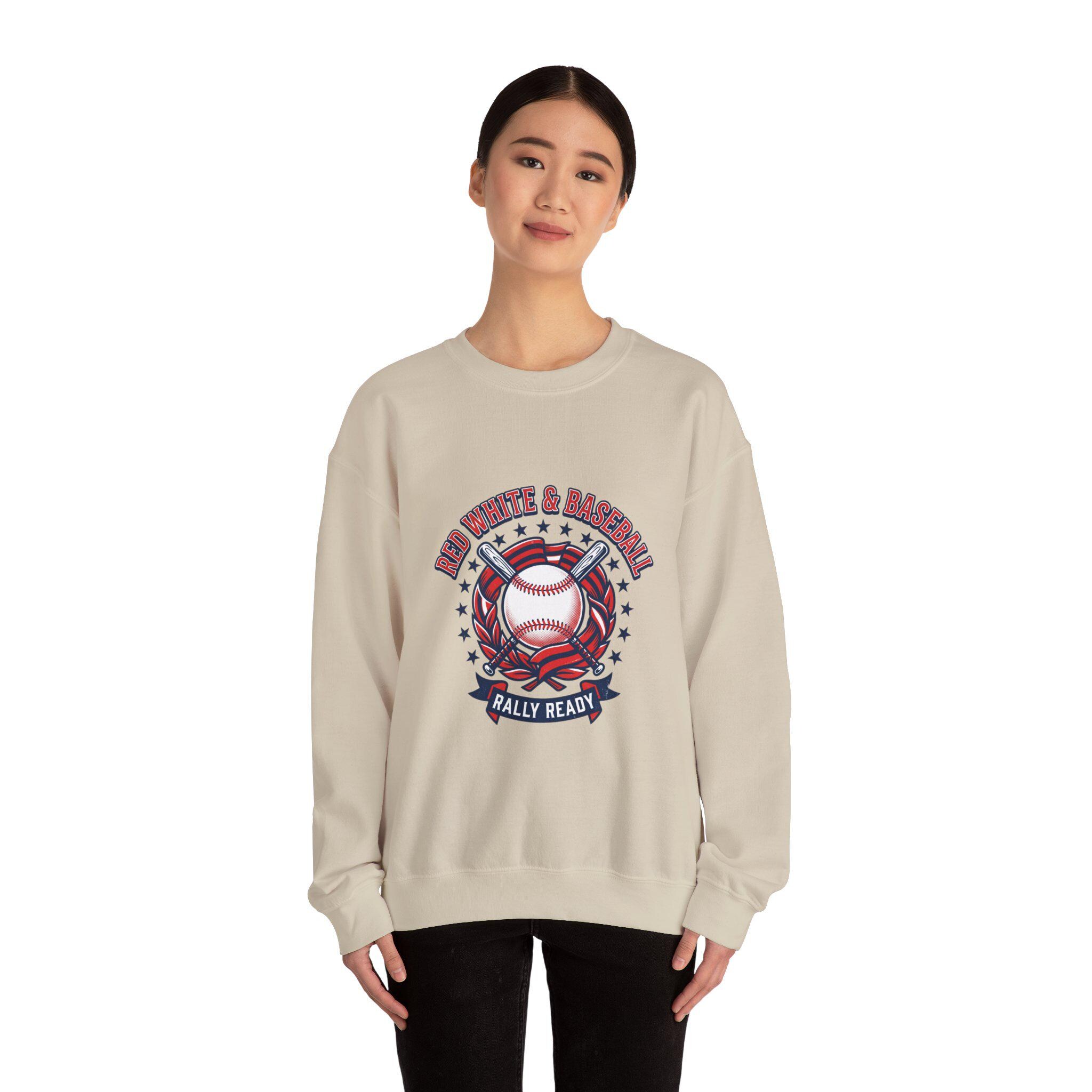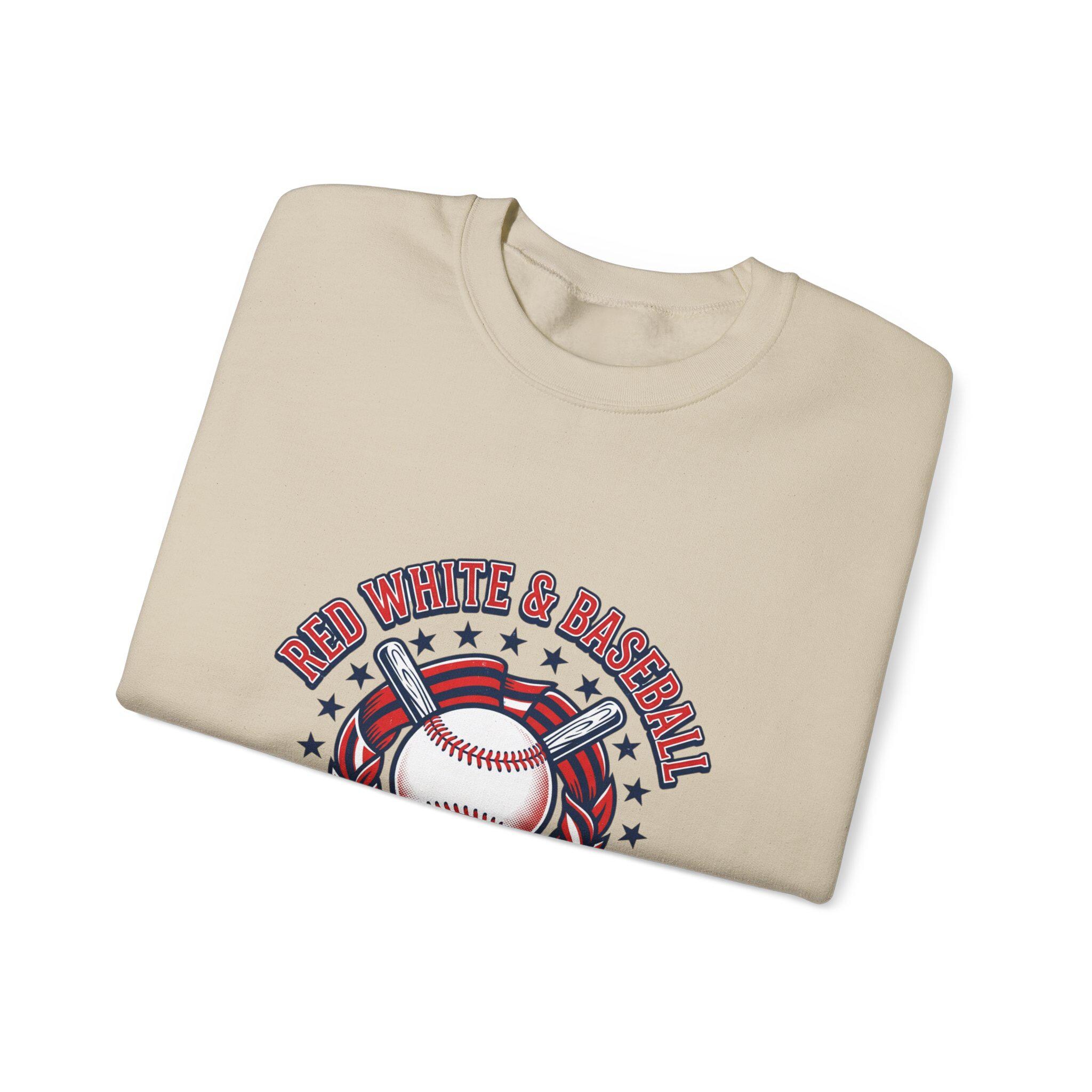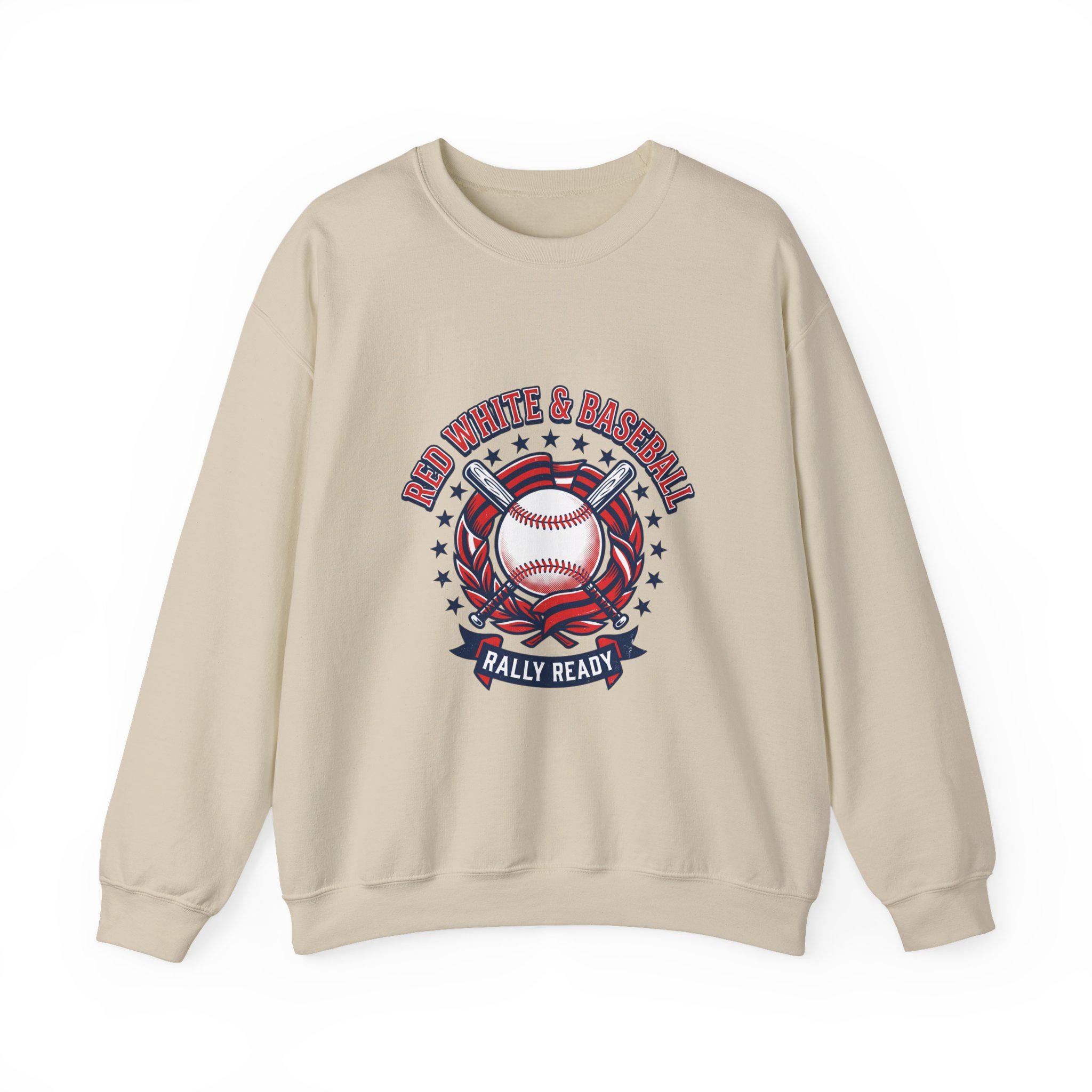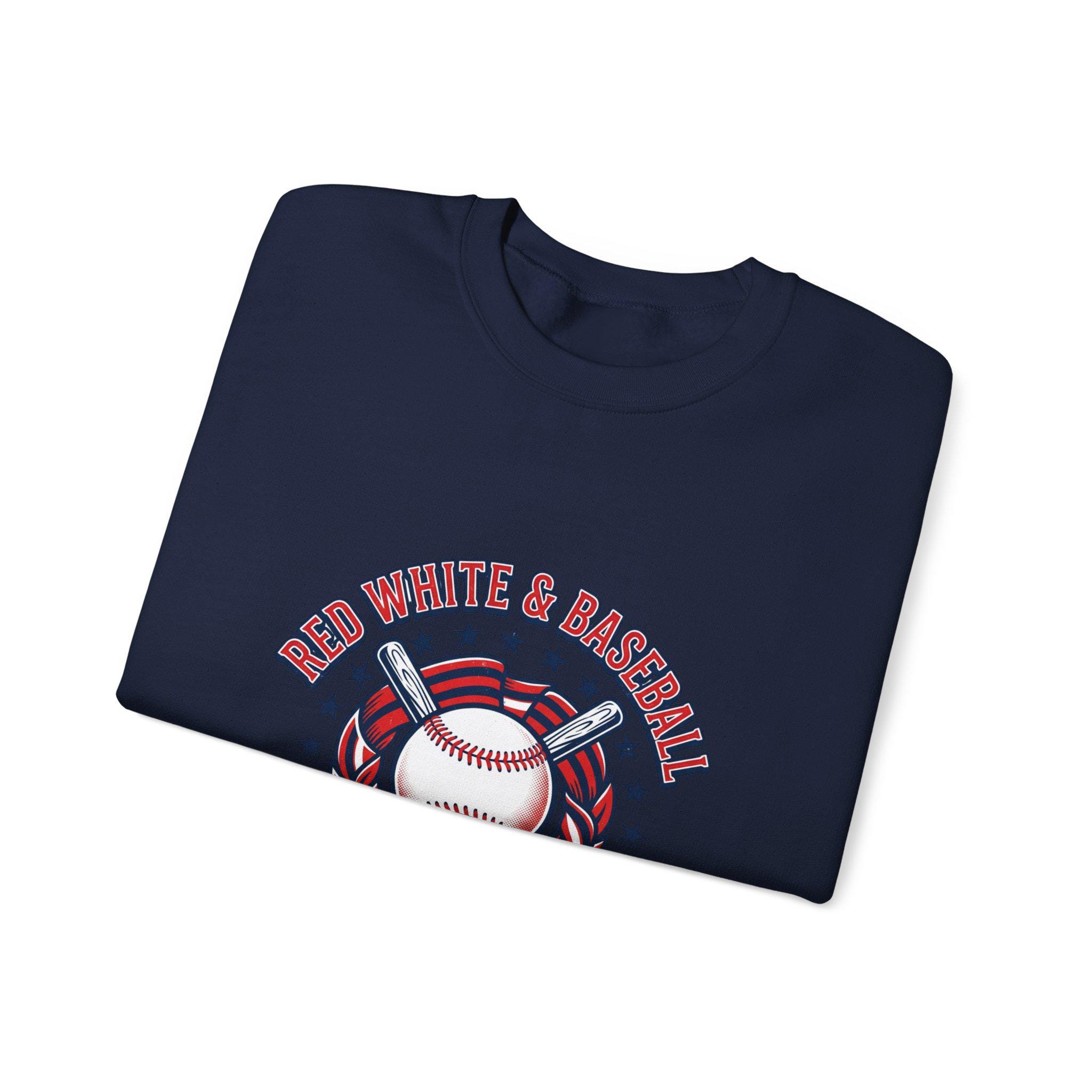 Red White & Baseball Crewneck Sweatshirt | Vintage Patriotic Baseball Graphic