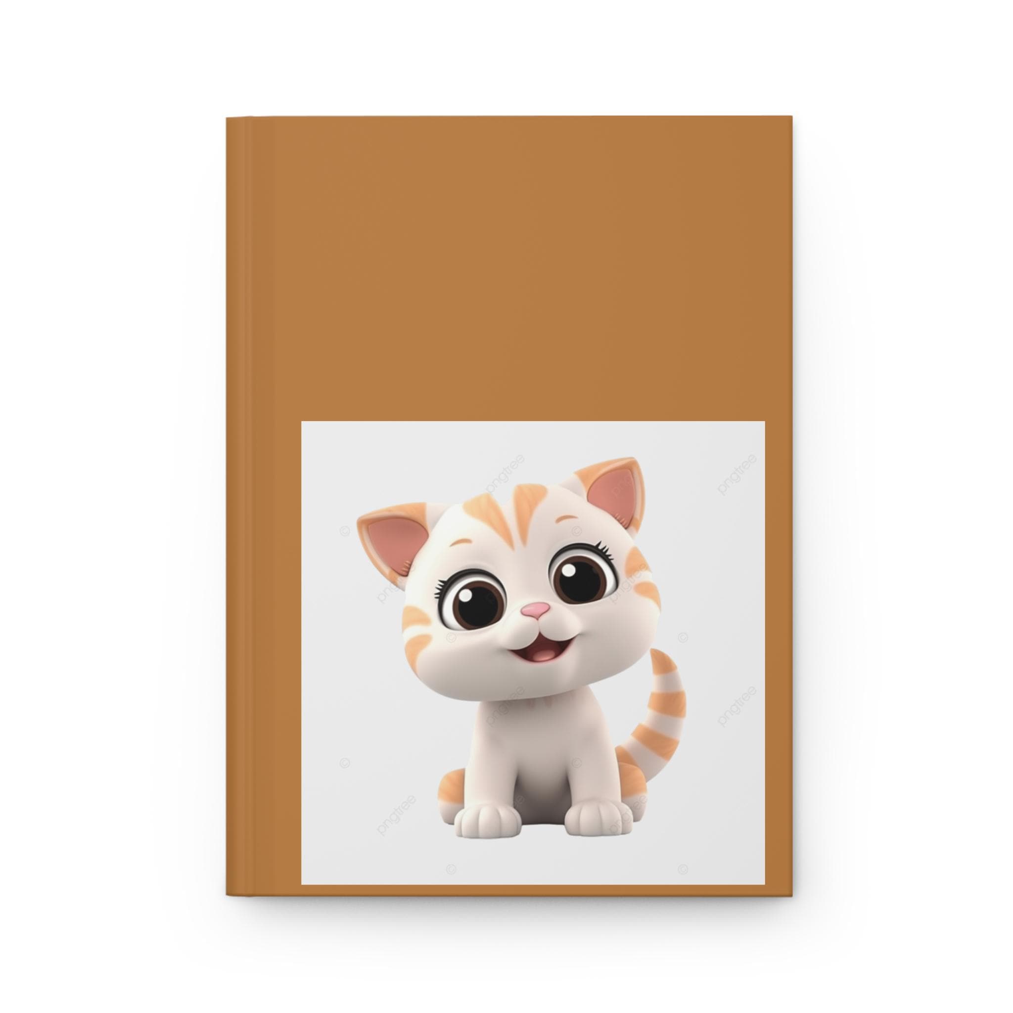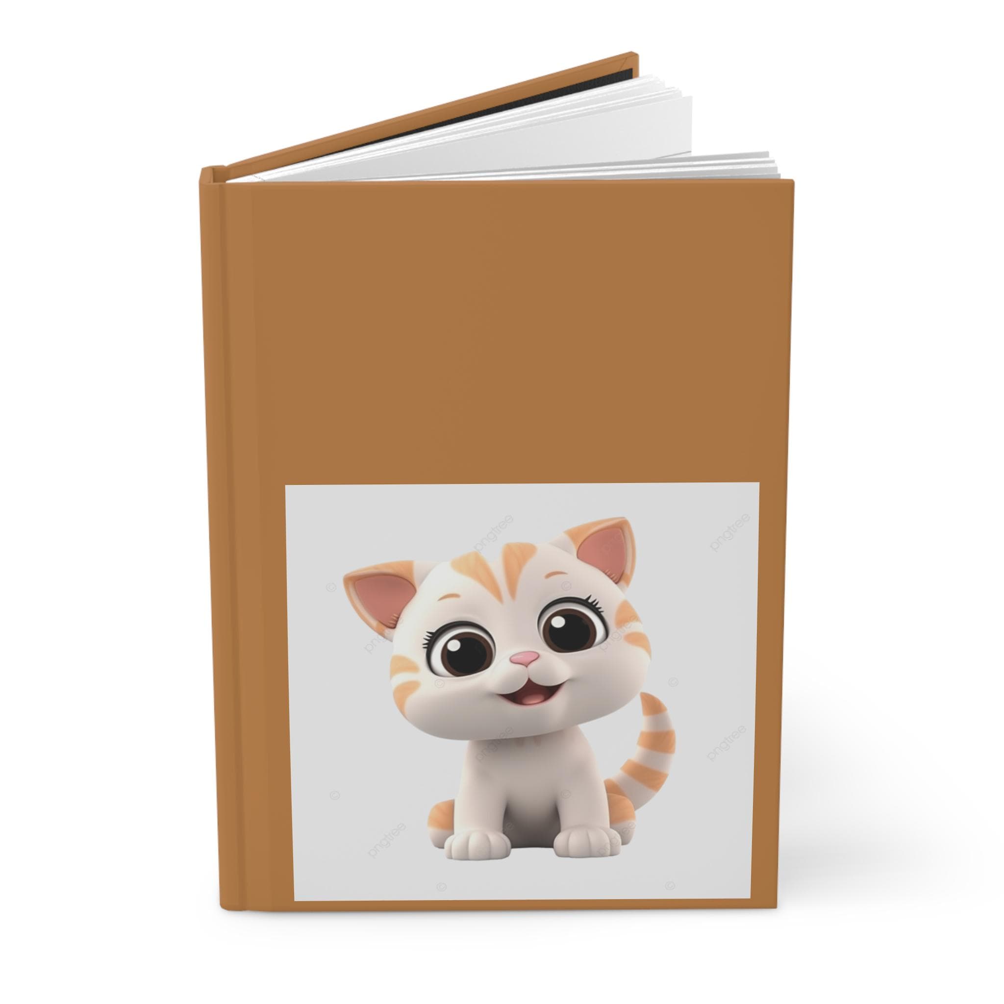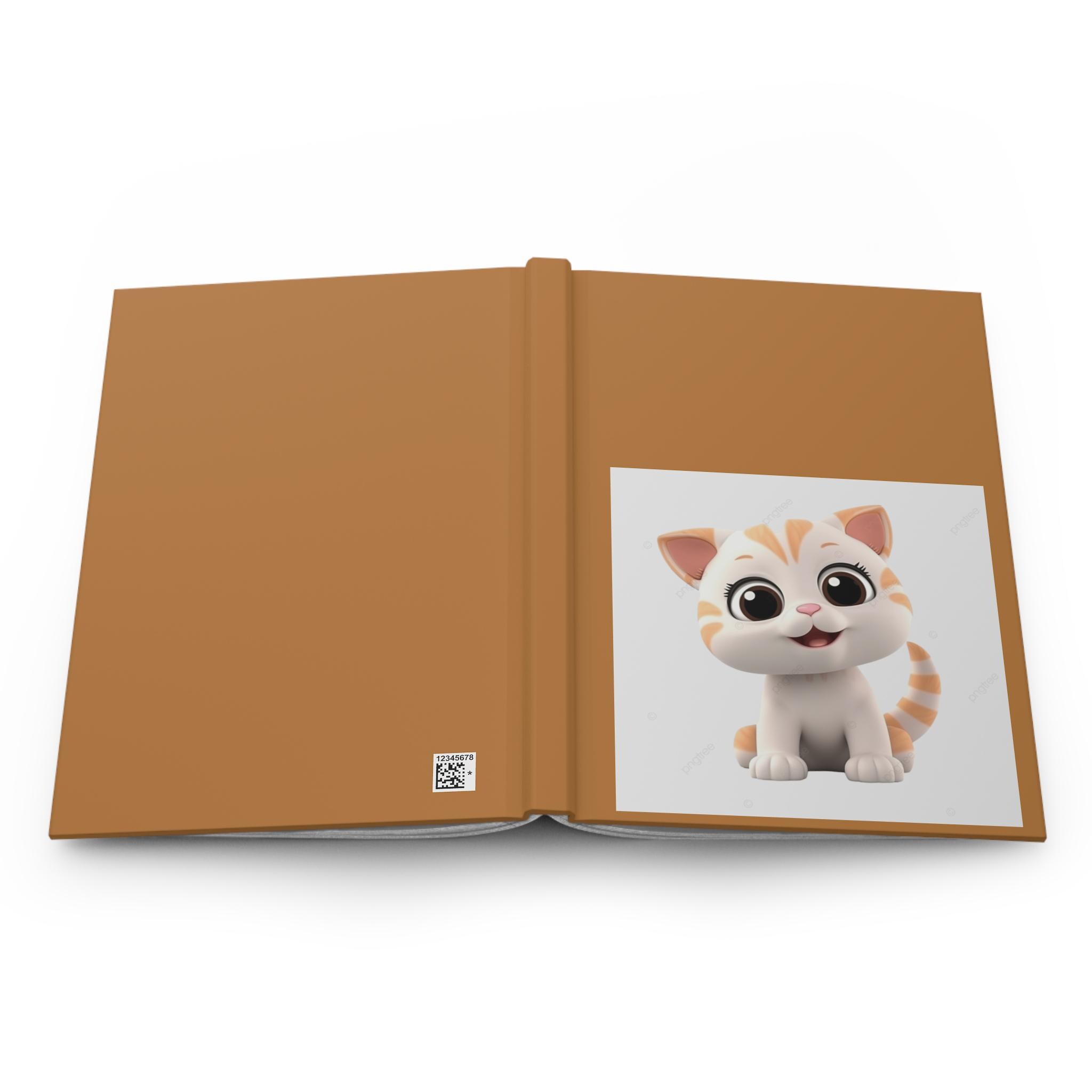 A warm, matte hardcover journal that invites quiet moments and playful creativity. The full-wrap cover in a rich caramel tone frames a centered, adorable kitten illustration that brings a gentle smile to the page. Inside, 150 lined pages (75 sheets) are neatly sewn with casewrap binding so the book opens flat and feels durable yet flexible. Perforated sheets let you share notes or tear out sketches cleanly. The matte laminated finish keeps the cover soft to the touch while protecting colors so the little cat stays bright and cheerful through everyday use. A small production barcode appears unobtrusively on the back cover.