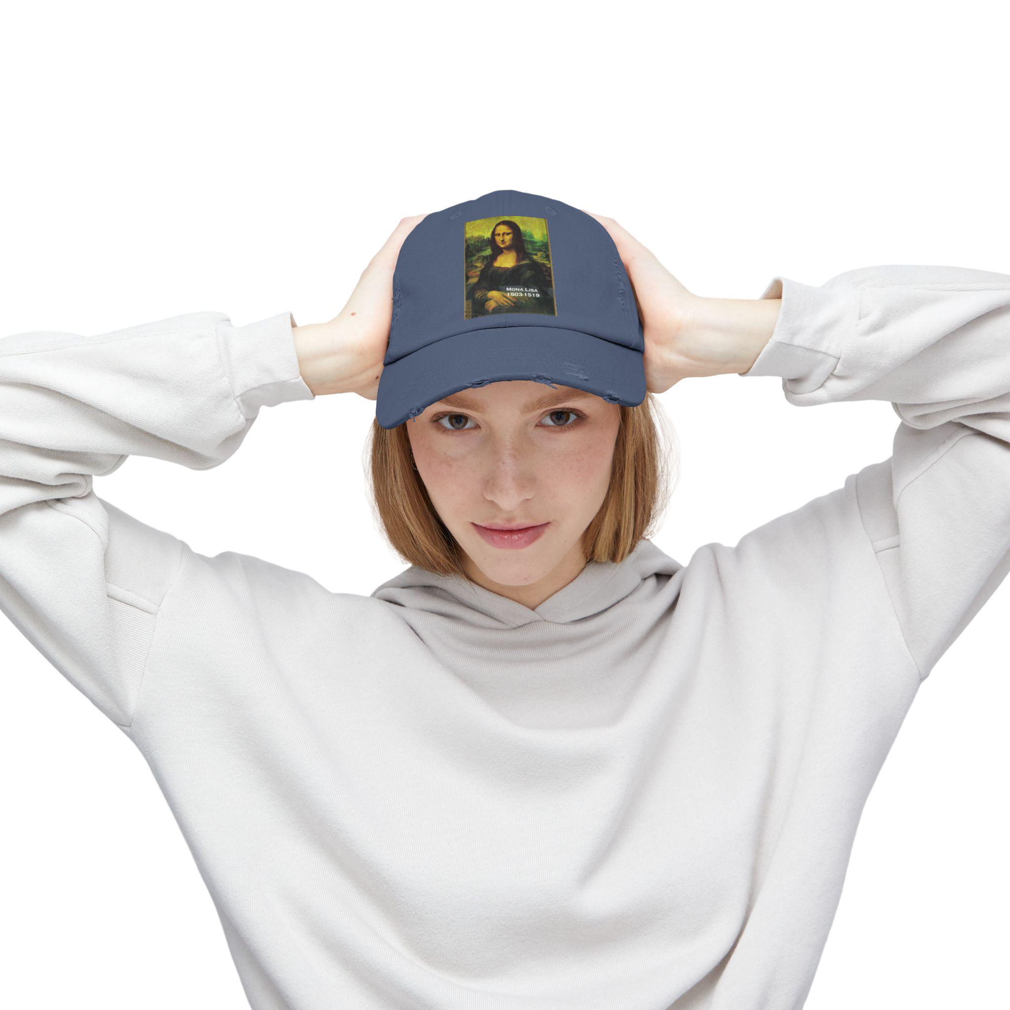 Mona Lisa Portrait Cap | Distressed Baseball Hat, Renaissance Art Patch
